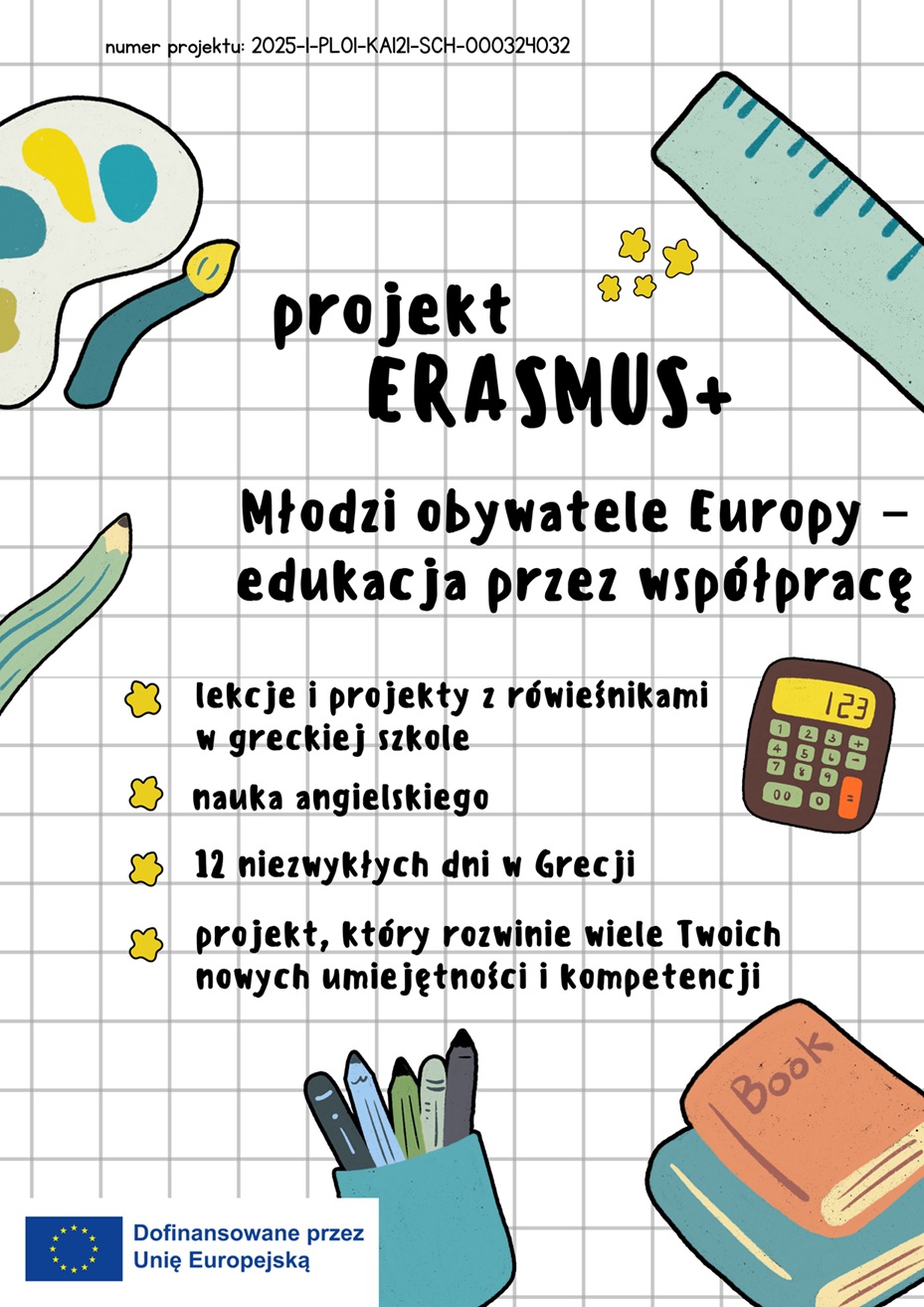 Projekt numer: 2025-1-PL01-KA121-SCH-000324032 będzie finansowany przez Unię Europejską w ramach programu Erasmus+, Akcja 1: KA121-SCH –